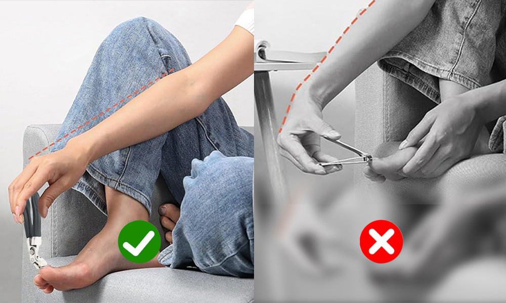 Unlike regular nail clipper with a narrow jaw opening, NeonClip has a sharp edge with a wide opening that can easily cut thick toenails.